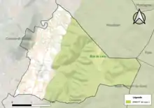 L'occupation des sols de la commune, telle qu'elle ressort de la base de données européenne d’occupation biophysique des sols Corine Land Cover (CLC), est marquée par l'importance des forêts et milieux semi-naturels (63,8 % en 2018), une proportion identique à celle de 1990 (63,9 %). La répartition détaillée en 2018 est la suivante : forêts (60,3 %), cultures permanentes (18,6 %), zones agricoles hétérogènes (17,6 %), milieux à végétation arbustive et/ou herbacée (3,5 %)[11]. L'évolution de l’occupation des sols de la commune et de ses infrastructures peut être observée sur les différentes représentations cartographiques du territoire : la carte de Cassini (XVIIIe siècle), la carte d'état-major (1820-1866) et les cartes ou photos aériennes de l'IGN pour la période actuelle (1950 à aujourd'hui)[Carte 1].