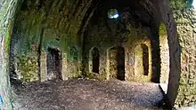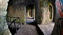 Lors de la construction, les pierres du cimetière préhistorique situé au sommet ont été utilisées, notamment un mégalithe qui a servi comme linteau de la cheminée[18]. Peu après la fin de la construction, une tempête a arraché le toit en ardoise, ce que les habitants de la région ont attribué à une punition du Diable pour avoir profané l'ancien cairn[19]. Conolly a fait remplacer le toit par une arche en pierre, à la façon d'un pont[16], qui est restée intacte jusqu'à présent, malgré l'abandon de la bâtisse pendant plus de deux siècles[19],[20].