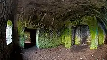 En 1978, l'archéologue et historien Patrick Healy découvre les restes d'une tombe préhistorique dans les bois dont il ne demeure que l'emplacement du squelette dans la chambre principale et les doubles murs extérieurs[40].