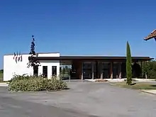 - L'église paroissiale Saint-Étienne, dite église du Sendex puisque située dans le bourg qui lui a donné son nom et devenu le cœur du village, aurait été reconstruite au XVe ou au XVIe siècle est surmontée d'un clocher-mur bâti au XVIIe siècle ; devenue l'église principale de la commune, elle est entièrement restaurée en 1826 ; l’extérieur en est blanchi en 1923 pour masquer l’appareil de brique[36],[37].