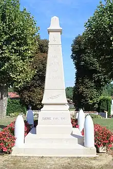 - Le monument aux morts fut érigé en 1920 à l'intersection entre la route D 67 et la route de Palordet. Il faut déplacé en 2015 en face de la nouvelle mairie[30].