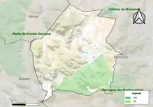 L'occupation des sols de la commune, telle qu'elle ressort de la base de données européenne d’occupation biophysique des sols Corine Land Cover (CLC), est marquée par l'importance des forêts et milieux semi-naturels (52 % en 2018), néanmoins en diminution par rapport à 1990 (54,7 %). La répartition détaillée en 2018 est la suivante : milieux à végétation arbustive et/ou herbacée (51,4 %), cultures permanentes (33,3 %), zones industrielles ou commerciales et réseaux de communication (6,3 %), zones urbanisées (3,5 %), mines, décharges et chantiers (3,5 %), zones agricoles hétérogènes (1,4 %), forêts (0,6 %)[20]. L'évolution de l’occupation des sols de la commune et de ses infrastructures peut être observée sur les différentes représentations cartographiques du territoire : la carte de Cassini (XVIIIe siècle), la carte d'état-major (1820-1866) et les cartes ou photos aériennes de l'IGN pour la période actuelle (1950 à aujourd'hui)[Carte 2].