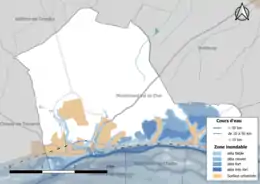 Les crues du Cher sont moins importantes que celles de la Loire, mais elles peuvent générer des dégâts importants. Les crues historiques sont celles de 1856 (5 m à l'échelle de Noyers-sur-Cher), 1940 (4,03 m) et 1977 (3,58 m). Le débit maximal historique est de 1 560 m3/s et caractérise une crue de retour supérieur à cent ans pour Montrichard Val de Cher[47]. Le risque d'inondation est pris en compte dans l'aménagement du territoire de la commune par le biais du Plan de prévention du risque inondation (PPRI) du Cher[48].