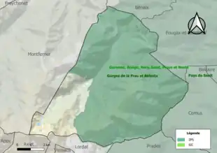 L’inventaire des zones naturelles d'intérêt écologique, faunistique et floristique (ZNIEFF) a pour objectif de réaliser une couverture des zones les plus intéressantes sur le plan écologique, essentiellement dans la perspective d’améliorer la connaissance du patrimoine naturel national et de fournir aux différents décideurs un outil d’aide à la prise en compte de l’environnement dans l’aménagement du territoire. Deux ZNIEFF de type 1[Note 4] sont recensées sur la commune[34] : le « massif de Tabe - Saint-Barthélemy » (15 185 ha), couvrant 20 communes du département[35], et les « montagnes de Belesta, de la Frau, de l'Ordat et de Prades » (14 014 ha), couvrant 32 communes dont 28 dans l'Ariège et 4 dans l'Aude[36] et une ZNIEFF de type 2[Note 5],[34] : les « montagnes d'Olmes » (31 924 ha), couvrant 33 communes dont 31 dans l'Ariège et 2 dans l'Aude[37].