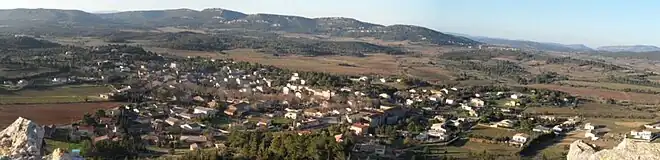 Le village est construit sur le flanc est d'une modeste colline face au rocher de Roquelongue. On y trouve le principal axe de vie du village.