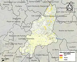 Le retrait-gonflement des sols argileux est susceptible d'engendrer des dommages importants aux bâtiments en cas d’alternance de périodes de sécheresse et de pluie. 3 % de la superficie communale est en aléa moyen ou fort (15,8 % au niveau départemental et 48,5 % au niveau national). Sur les 933 bâtiments dénombrés sur la commune en 2019, 24 sont en aléa moyen ou fort, soit 3 %, à comparer aux 14 % au niveau départemental et 54 % au niveau national. Une cartographie de l'exposition du territoire national au retrait gonflement des sols argileux est disponible sur le site du BRGM[17],[Carte 1].