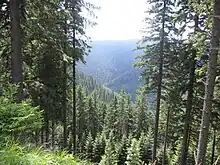 Les forêts de feuillus sont présentes jusqu'à environ 1 000 m puis un mélange de hêtres, épicéas et de mélèzes jusqu'à 1 400 m et d'épicéas et de sapins entre 1 400 et 1 800 m. La flore de taille réduite au-delà de 1 800 m prend des couleurs vives en été. La flore de la zone sommitale est dominée par les graminées, rhododendrons, groseillers et pivoines de montagne[2].