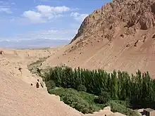 - (en) « Flaming Mountains (Huo Yan Shan) and Grape Valley », sur Travel China Guide (consulté le ).