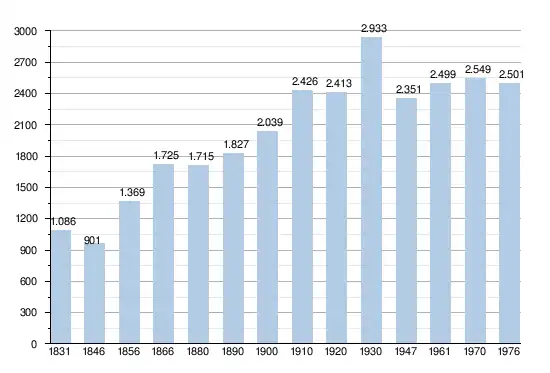 - Sources : INS, Rem. : 1831 jusqu'en 1970 = recensements, 1976 = nombre d'habitants au 31 décembre.