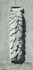 Les extrémités du mémorial sont constituées de piliers arborant les millésimes « 1914 » et « 1918 ». Ornés de guirlandes de feuilles de laurier et de feuilles de chêne, ces piliers sont surmontés chacun d'un casque militaire supporté par deux pigeons aux ailes déployées[1].