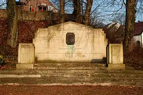 Le monument est une stèle commémorative en pierre blanche d'environ 2m de haut et 3m de large, précédé d'un escalier en pierre bleue.