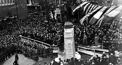 Le cénotaphe avec des soldats à ses pieds