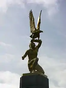 La statue en bronze est réalisée par le New-yorkais C.P. Jennewein. Elle est recouverte d'une fine feuille d'or. Un natif américain y est représenté, agenouillé. Son bras gauche, sur lequel est perché un aigle prêt à s'envoler, est tendu vers le ciel. Cette œuvre atteint une hauteur de 3,50 m.