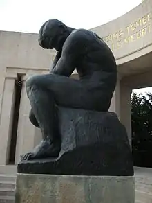 La statue centrale représente la « Pensée accomplissant son effort de résurrection ». Deux reliefs encadrent la statue centrale. Celui de gauche « 1914 le sacrifice » est dédié aux familles des morts. Celui de droite « 1918 la leçon du passé » est destiné aux générations futures pour qu'elles connaissent le sacrifice de leurs parents.