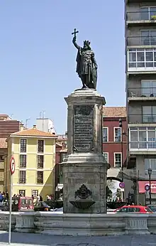 La sculpture représente Don Pelayo († 737), considéré comme l'initiateur de la Reconquista[4].