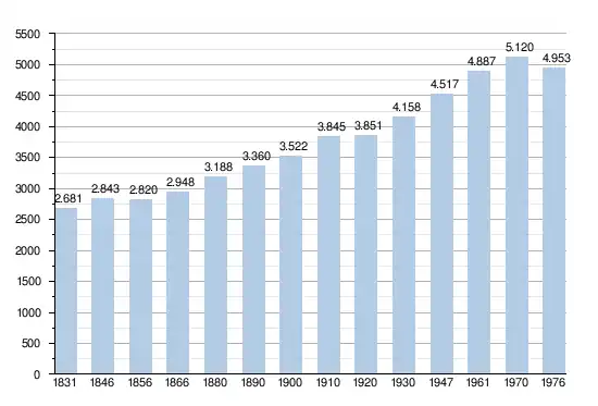 - Sources : INS, Rem. : 1831 jusqu'en 1970 = recensements, 1976 = nombre d'habitants au 31 décembre[2].