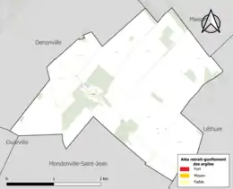 Le retrait-gonflement des sols argileux est susceptible d'engendrer des dommages importants aux bâtiments en cas d’alternance de périodes de sécheresse et de pluie. 0 % de la superficie communale est en aléa moyen ou fort (52,8 % au niveau départemental et 48,5 % au niveau national). Sur les 19 bâtiments dénombrés sur la commune en 2019, 0 sont en aléa moyen ou fort, soit 0 %, à comparer aux 70 % au niveau départemental et 54 % au niveau national. Une cartographie de l'exposition du territoire national au retrait gonflement des sols argileux est disponible sur le site du BRGM[16],[Carte 2].
