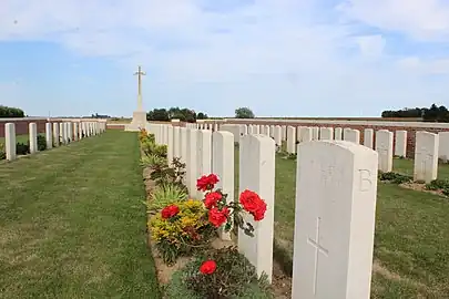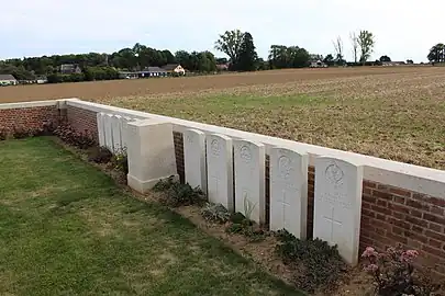 Ce cimetière renferme les tombes de 163 soldats du Commonwealth de la Première Guerre mondiale, dont 74 non identifiées, et des monuments commémoratifs spéciaux à huit soldats du Royaume-Uni qui sont connus pour être enterrés parmi eux. D'autres monuments commémoratifs spéciaux enregistrent les noms de neuf soldats du Royaume-Uni et d'un marin de la division navale royale, enterrés par l'ennemi à Morchies, dont les tombes ont été détruites par des tirs d'artillerie. Ce cimetière contient également les tombes de treize victimes allemandes de la Première Guerre mondiale. Il a été conçu par l'architecte britannique William Harrison Cowlishaw.