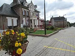 - Sur la mairie, une plaque commémorant des déportés évadés, 1944.