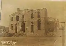 Au cours de ces combats, les bombardements ont provoqué de nombreuses destructions comme le montre l'état de la mairie à la fin de la guerre sur la photo ci-contre[17].