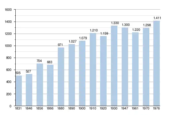 - Sources : INS, Rem. : 1831 jusqu'en 1970 = recensements, 1976 = nombre d'habitants au 31 décembre.