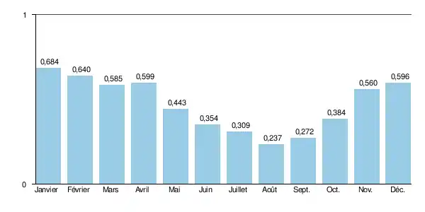 À l'étiage le VCN3 peut chuter jusque 0,086 m3/s, en cas de période quinquennale sèche, soit 86 litres par seconde, ce qui ne peut être considéré comme sévère pour un cours d'eau de cette taille.