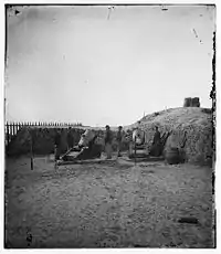 Les confédérés abandonnent Morris Island en 1863. Elle est alors occupé par l'Union. En 1864, six cents officiers confédérés y sont transférés de Fort Delaware (en). Cinquante sont rapidement échangés. Les autres sont alors utilisés comme bouclier humain pour faire cesser l'artillerie de Fort Sumter.