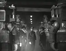 - Bien que l'abréviation "R.U.R." soit utilisée pour les robots, le scénario du film n'est basé qu'indirectement sur la mise en scène de la pièce R.U.R.[3] (1920) du tchécoslovaque Karel Čapek, mais est plutôt adapté du roman Émeute de fer (uk) (Залізний бунт) (1929) de l'Ukrainien Volodymyr Vladko.