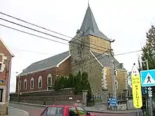 - L'église Saint-Pierre, dont la tour romane est la partie la plus ancienne, eut certainement un rôle défensif. Nef et chœur furent reconstruits en 1844 en style néoclassique (pour quelques vues générales de l'intérieur et un aperçu du mobilier, voir le site de l'Institut du Patrimoine artistique à Bruxelles (IRPA)[2] ; entrée : Mortier).