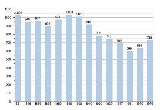 - Sources : INS, Rem. : 1831 jusqu'en 1970 = recensements, 1976 = nombre d'habitants au 31 décembre.
