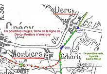 - Jean Randé, Francois Librini, « Dercy/Mortiers Versigny », Aisne, Archéologie ferroviaire (v2) - Atlas des lignes de chemins de fer disparues (consulté le ).