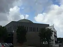 La mosquée, d'une superficie de 2 100 m2, est construite sur un terrain de 3 100 m2[4]. L'ensemble architectural comprend en réalité deux bâtiments distincts : la mosquée « proprement dite » et le « centre culturel Abdullah Al Darwish » qui abrite des salles de cours, une médiathèque, une salle polyvalente, une bibliothèque, une agence de voyages, un restaurant et trois studios permettant accueillir des conférenciers et invités de passage. Ces deux bâtiments, séparés par un patio à ciel ouvert comprenant trois bassins à fontaine, qui sont reliés entre eux par une galerie[1].