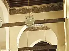 Exemples d'inscriptions coufiques (en haut) à l'intérieur de la salle de prière de la mosquée