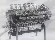 Ce moteur thermique essence quatre temps possède douze cylindres en V chemisés, ouverts à 60°, bloc en aluminium, refroidi par eau, doté d'un vilebrequin 7 paliers avec arbres à cames en tête commandé par une distribution par pignons à deux culasses en aluminium à soupapes en tête.