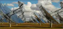 Le four solaire, également connu sous le nom de centrales électriques à «tour solaire» ou «héliostat» ou centrales électriques[32], est un type de four solaire utilisant une tour pour recevoir la lumière solaire focalisée. Il utilise un ensemble de miroirs plats et mobiles (appelés héliostats) pour concentrer les rayons du soleil sur une tour collectrice (la cible)[33].