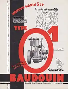 En 1948, Baudouin crée le Service Applications Marines qui va s’occuper de l’ensemble propulsif complet (moteur, réducteur, arbre de transmission, hélice).
