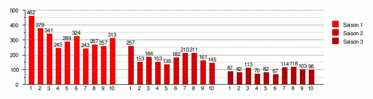 Source et légende : version française (VF) sur RS Doublage[1] et Doublage Séries Database[2].