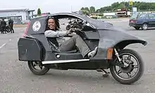• efficacité : les motos ont un profil relativement haut qui réduit les performances aérodynamiques. « Une position assise les pieds en avant est plus facile à rationaliser », selon l'inventeur Craig Vetter[16] ;