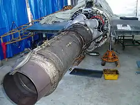 La tuyère est reliée au tube d'extension par des vis, et dispose d'une section fixe. Le diamètre de cette dernière varie de 303 à 316 mm. Ce diamètre, choisi en usine, déterminera la poussée, la température des gaz d'échappement et la consommation spécifique du moteur[2].