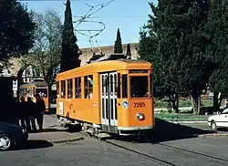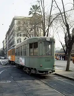 Lorsque, le 1er juillet 1931, la ligne d'autobus Rome-Tivoli est mise en service, remplaçant les tramways à vapeur de la compagnie belge du même nom, l'ATAG, l'entreprise publique de transport de la capitale italienne se trouve immédiatement confrontée à des problèmes pour satisfaire la demande de transports. Aucun autobus ne peut soutenir la comparaison sur sa capacité avec une rame de tramways comportant dix wagons. L'ATAG joue la carte de bus connue sous le nom d'autobus alvéolaire sur la ligne Rome-Tivoli. Ce véhicule expérimental à deux étages, appelé duplex dans sa première version, a une hauteur de 4,30 m et un aménagement intérieur qui ne comporte pas deux étages mais deux hauteurs de sièges superposés dont la disposition imite les cellules d'une ruche (d'où le nom du véhicule). Pris par l'engouement pour ce type de véhicule lors de leur présentation internationale[1], la compagnie de transport romaine décide d'expérimenter ce principe et fait construire un tramway prototype sur ce principe. C'est en novembre 1936 que le seul et unique tramway urbain à impériale circulant en Italie fit son entrée dans le parc des tramways romains, prototype d'une série de voitures qui quelques années plus tard auraient dû être exploitées sur plusieurs lignes essentielles jusqu'alors exploitées par des trolleybus.