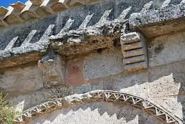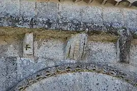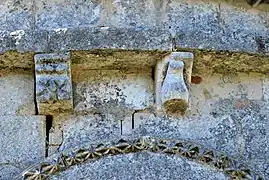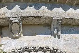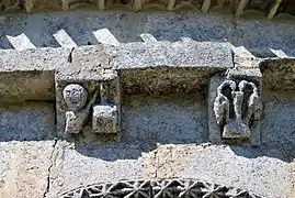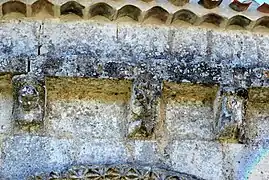 Les modillons qui supportent la corniche au-dessus du portail sud et ceux qui supportent la corniche du chevet sont du XIIe siècle. Certains entre-eux sont très érodés.