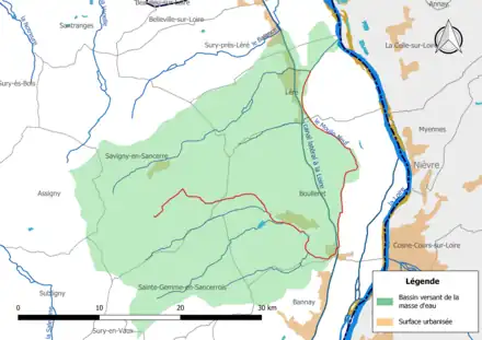 Le Moulin Neuf traverse 3 communes, soit de l'amont vers l'aval : Savigny-en-Sancerre (18), Boulleret (18), Léré (18).