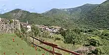 Vue du village de Moulinet depuis la piste de Saint-Michel. | |||||