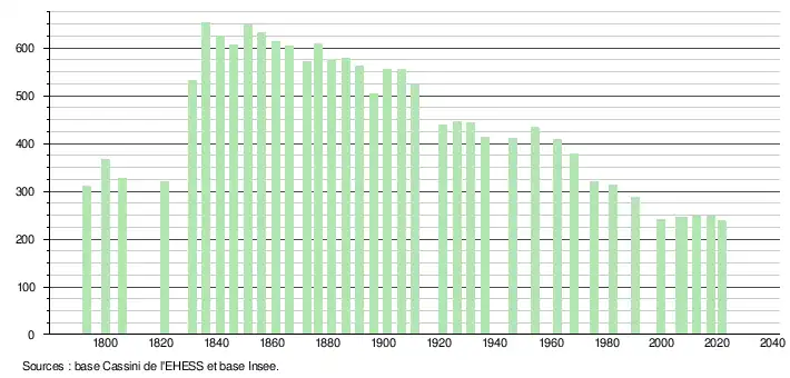 En 1834, le finage de la commune s'étend tandis que sa population croît en raison de la suppression de la commune de Dommartin, après la disparition de son abbaye. L'ancien territoire de Dommartin est réparti entre les trois communes limitrophes. Deux siècles durant, la commune connaît un déclin démographique essentiellement lié à l'exode rural.