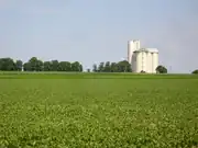 Le centre du bourg principal de la commune de Mouriez vu du chemin rural dit « de Douai ». | |||||
