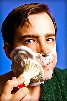 - (en) Cet article est partiellement ou en totalité issu de l’article de Wikipédia en anglais intitulé « Shaving cream » (voir la liste des auteurs).