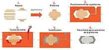 Les mousses métalliques sont généralement fabriqués par injection d'un gaz ou mélange d'un agent moussant dans un métal liquide[7].