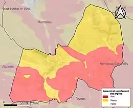 Le retrait-gonflement des sols argileux est susceptible d'engendrer des dommages importants aux bâtiments en cas d’alternance de périodes de sécheresse et de pluie. La totalité de la commune est en aléa moyen ou fort (75,2 % au niveau départemental et 48,5 % au niveau national). Sur les 483 bâtiments dénombrés sur la commune en 2019, 483 sont en aléa moyen ou fort, soit 100 %, à comparer aux 94 % au niveau départemental et 54 % au niveau national. Une cartographie de l'exposition du territoire national au retrait gonflement des sols argileux est disponible sur le site du BRGM[23],[Carte 3].