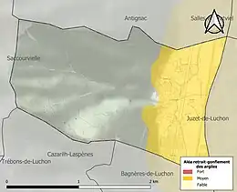 La commune est vulnérable au risque de mouvements de terrains constitué principalement du retrait-gonflement des sols argileux[35]. Cet aléa est susceptible d'engendrer des dommages importants aux bâtiments en cas d’alternance de périodes de sécheresse et de pluie. 34 % de la superficie communale est en aléa moyen ou fort (88,8 % au niveau départemental et 48,5 % au niveau national). Sur les 83 bâtiments dénombrés sur la commune en 2019, 83 sont en aléa moyen ou fort, soit 100 %, à comparer aux 98 % au niveau départemental et 54 % au niveau national. Une cartographie de l'exposition du territoire national au retrait gonflement des sols argileux est disponible sur le site du BRGM[36],[Carte 3].