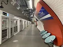 Dans le cadre de l'automatisation de la ligne 4, la station est la première à être équipée de portes palières. La pose d'un premier élément a lieu en [2] et l'installation s'achève en .